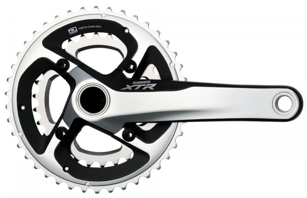 The FC-M985 is the race version, and it only comes in a double with three different gearing options to suit the size and strength of your quads. Like the recently introduced 10-speed XT and SLX groups, the new XTR gets the Dyna-Sys treatment, meaning 10 speed rear cassette, asymmetrical and directional chain and revised front gearing ratios (mainly on the 3x cranks…the 2x are something new for Shimano). We’ve ridden and raced the XT Dyna-Sys and it’s quite smooth and shifts well under load, so the new XTR should be pretty slick.