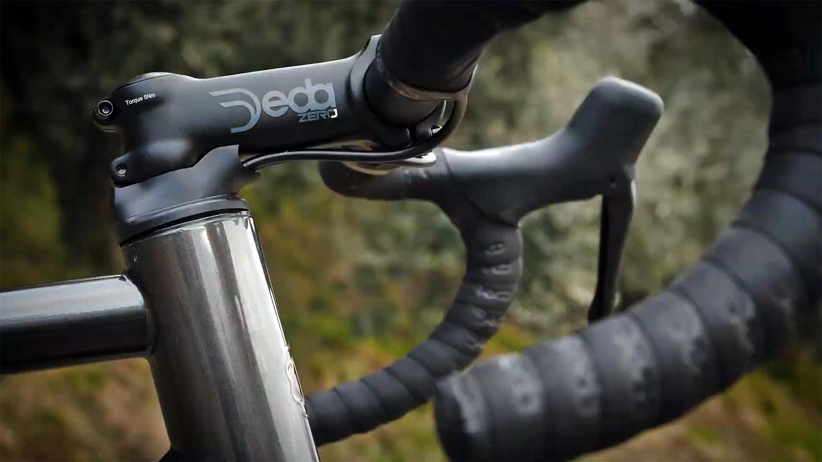 From about thirteen seconds of rapid-fire teaser, we can see that the new Battaglin Milano features fully integrated internal cable routing compatible with mechanical or wireless routing via a semi-integrated Deda S-DCR headset with a separate bar & stem. The Italian steel bike is built up with the same full carbon fork as the rest of the Battaglin gravel family, with 3-pack cage and fender mounts.