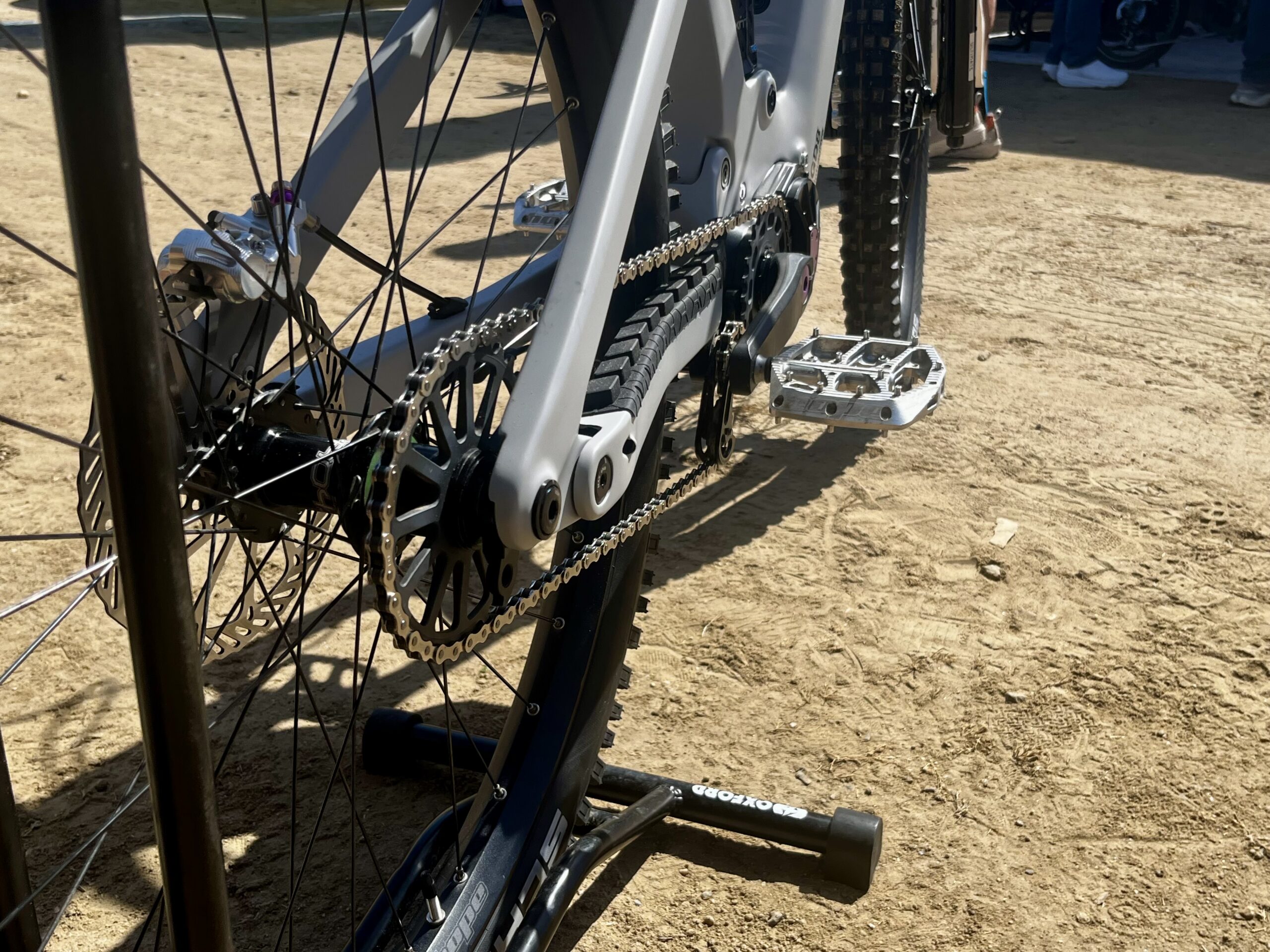 At Sea Otter, the Intradrive unit was displayed on two bikes made for the show. The guys from Intradrive told me that the focus is on business-to-business (I think “B2B” is what they call it) rather than on manufacturing a frame.