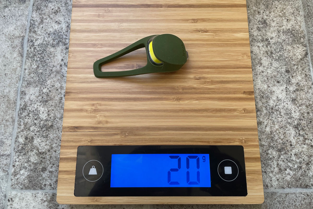 The Frog (front) weighed in at 20g on my scale. The rear light actually weighed 19g.