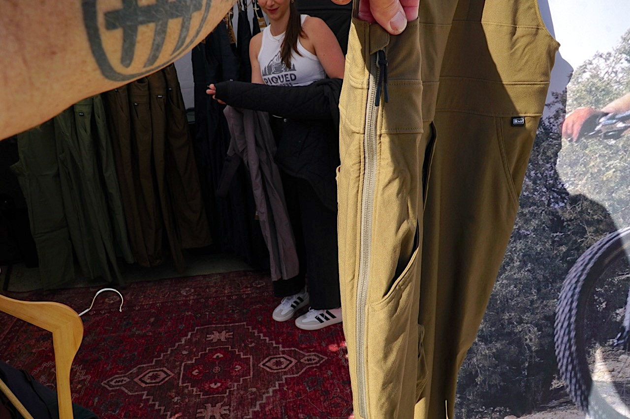 There were a lot of really cool things to see at the 2026 Sea Otter Classic (SOC) this year. And, one of the brands that really caught my eye was occupying a lil’ 10×10 booth near the Sierra Nevada beer garden. The brand was AllOver Apparel, and the item of clothing that caught my eye was a techy-looking set of overalls. They’re called the Lookout (women’s) and the Argos (men’s) “go everywhere” overalls, and I was intrigued.