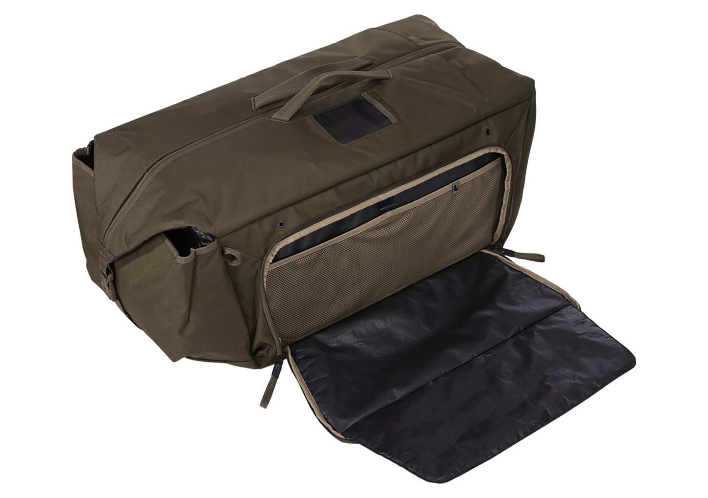 The duffel has dual carrying options with both backpack-style straps and grab handles, and a spring wire opening maintains the bag’s structure when open, providing complete visibility of contents during packing.