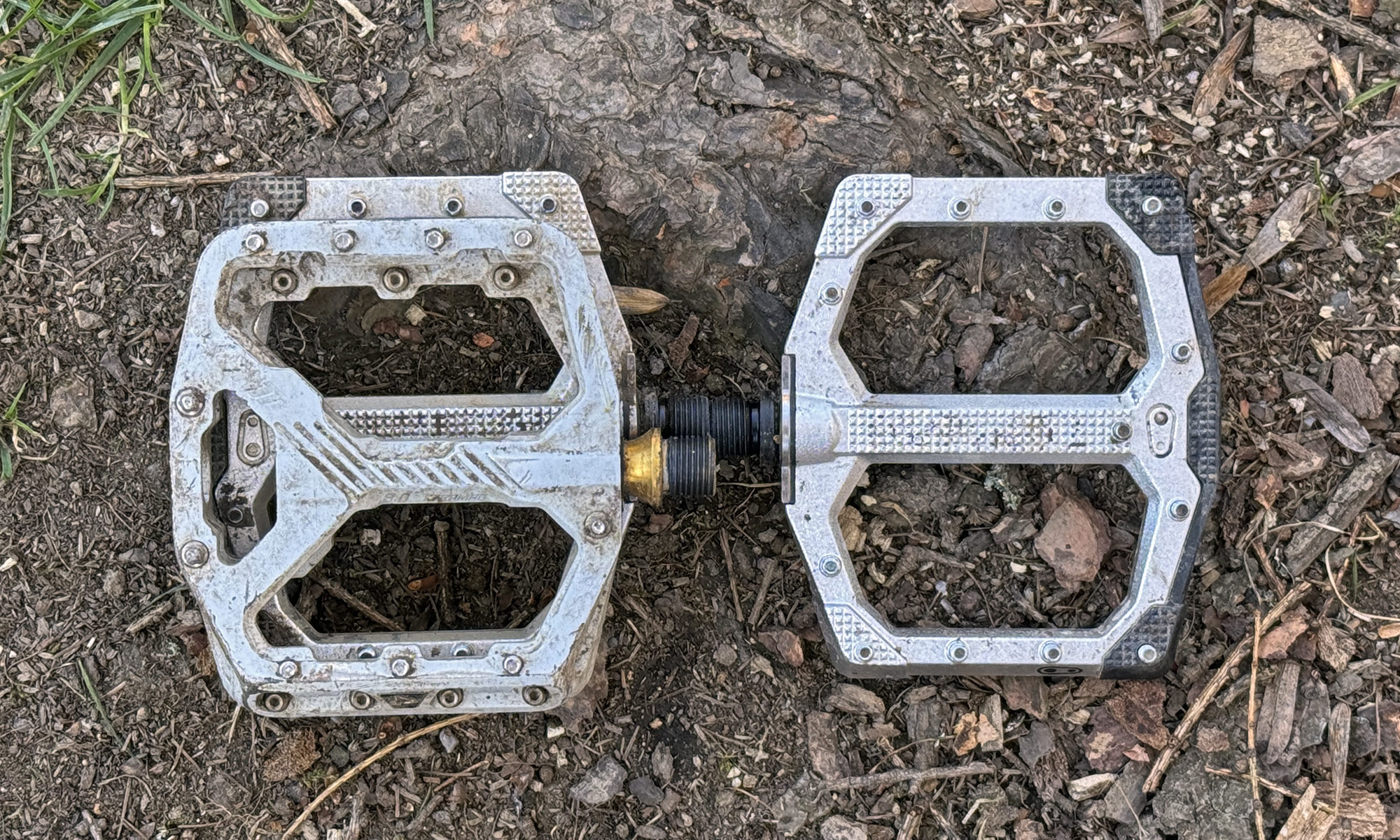 So we’ve been testing them out this fall, the small pedals on an enduro bike and the large ones on a full-power eMTB. And we’ve been impressed with how they really do deliver a better connection to our feet, and yet still look great after a couple months of rocky abuse…