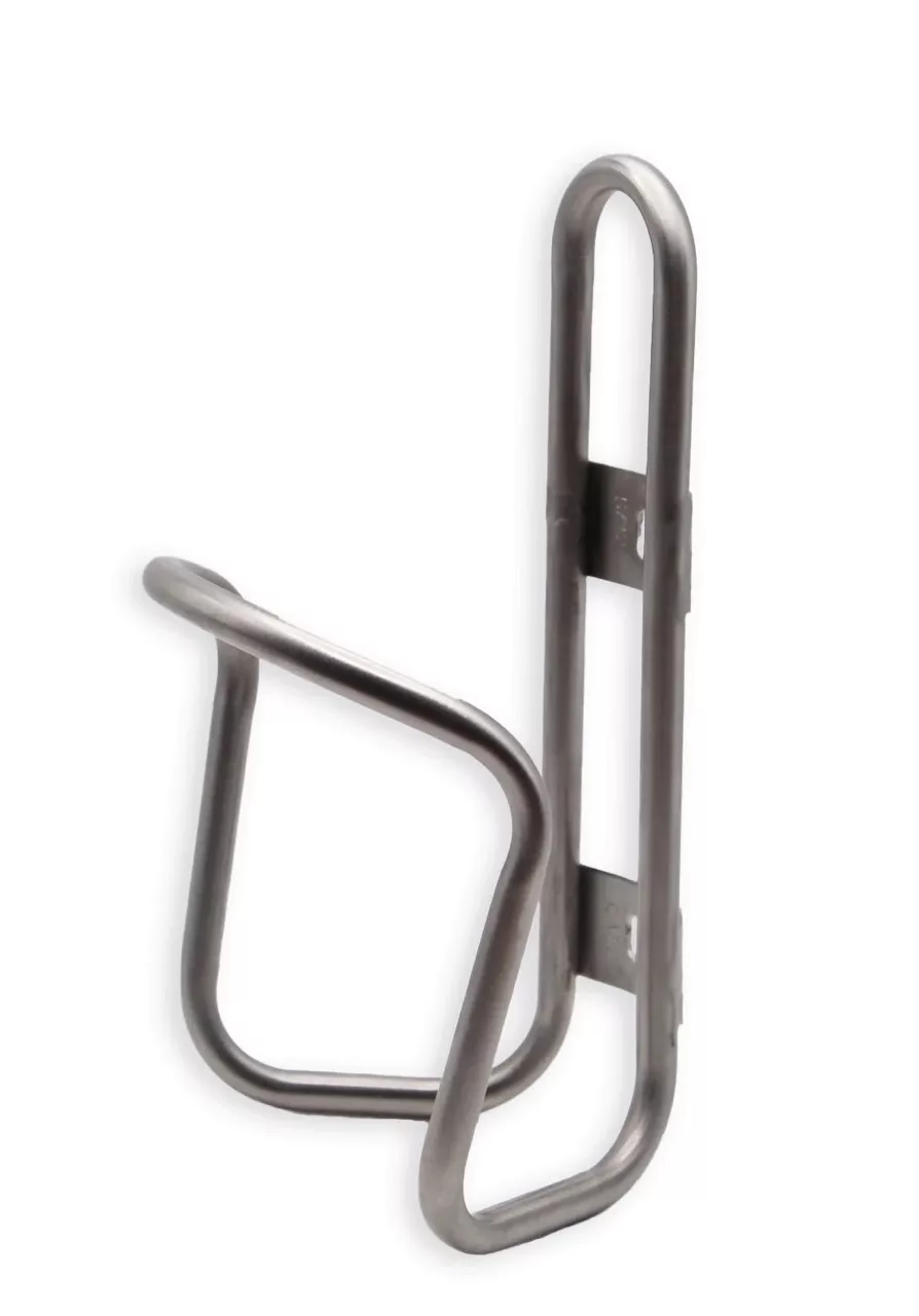 They’ve launched a new Flat Top Water Bottle Cage in both stainless steel (304 stainless steel) and titanium (3-2.5). This new water bottle cage is just like their regular water bottle cage, but without the bend at the top. Eliminating that bend allows you to carry your flat-sided “non-cycling” water bottles, like say a Nalgene, or Klean Kanteen bottle in a traditional water bottle cage.
