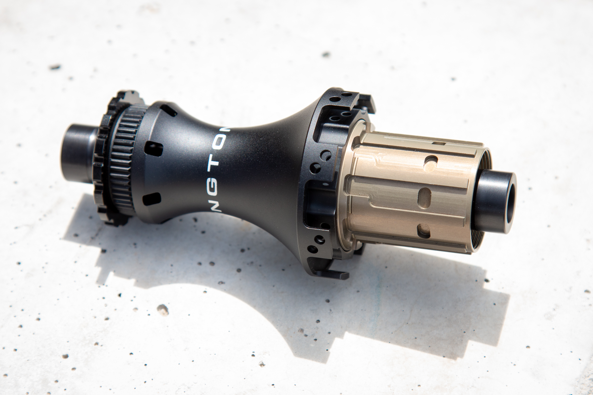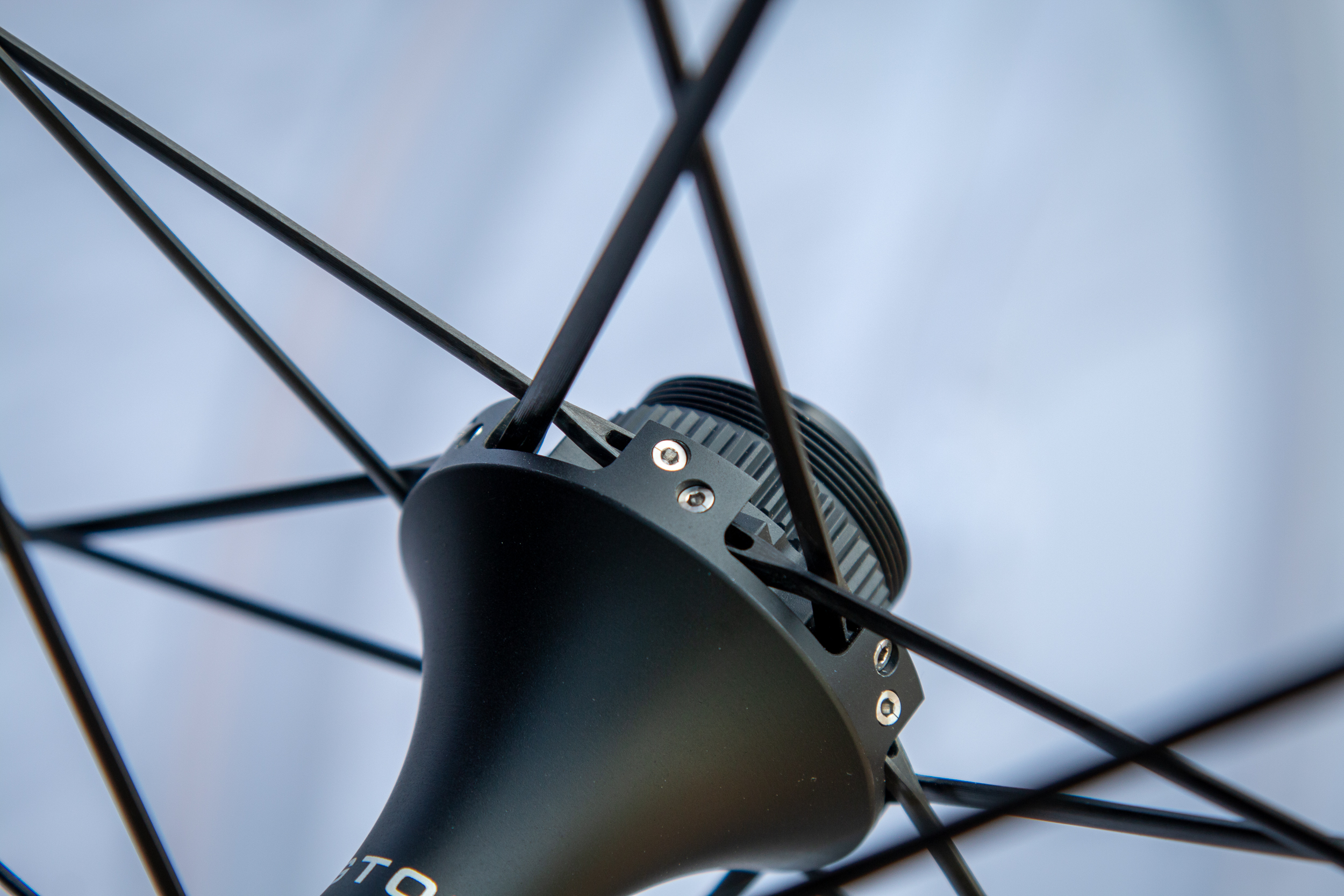 Of course, these proprietary spokes will need a proprietary hub, but a similar obsession with the details has been employed here as well. An external lockring for Centerlock is used to allow wider bearing spacing, and the main load bearing is a needle bearing for increased durability. The freehub ratchet is a helical spline design with very low drag, but the design means the harder you pedal, the harder the ratchet engages. Even the end caps have been given an overhaul with PEEK plastic, which they claim is 4x stronger than aluminum but is still kinder on carbon frames and won’t corrode.