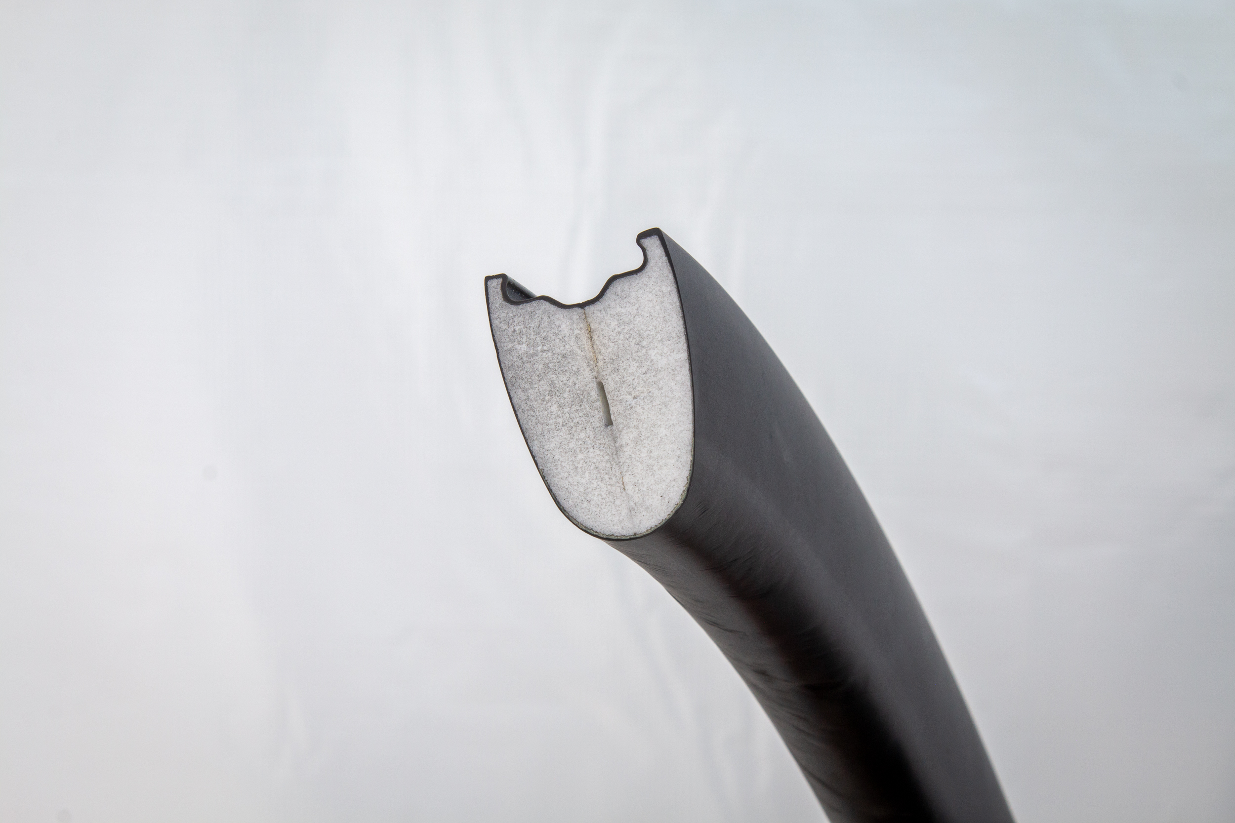 The 50mm deep rims will use their foam core design with a crochet hook profile, and are 23mm internal with a 34mm external profile optimized for 28-32mm tires.