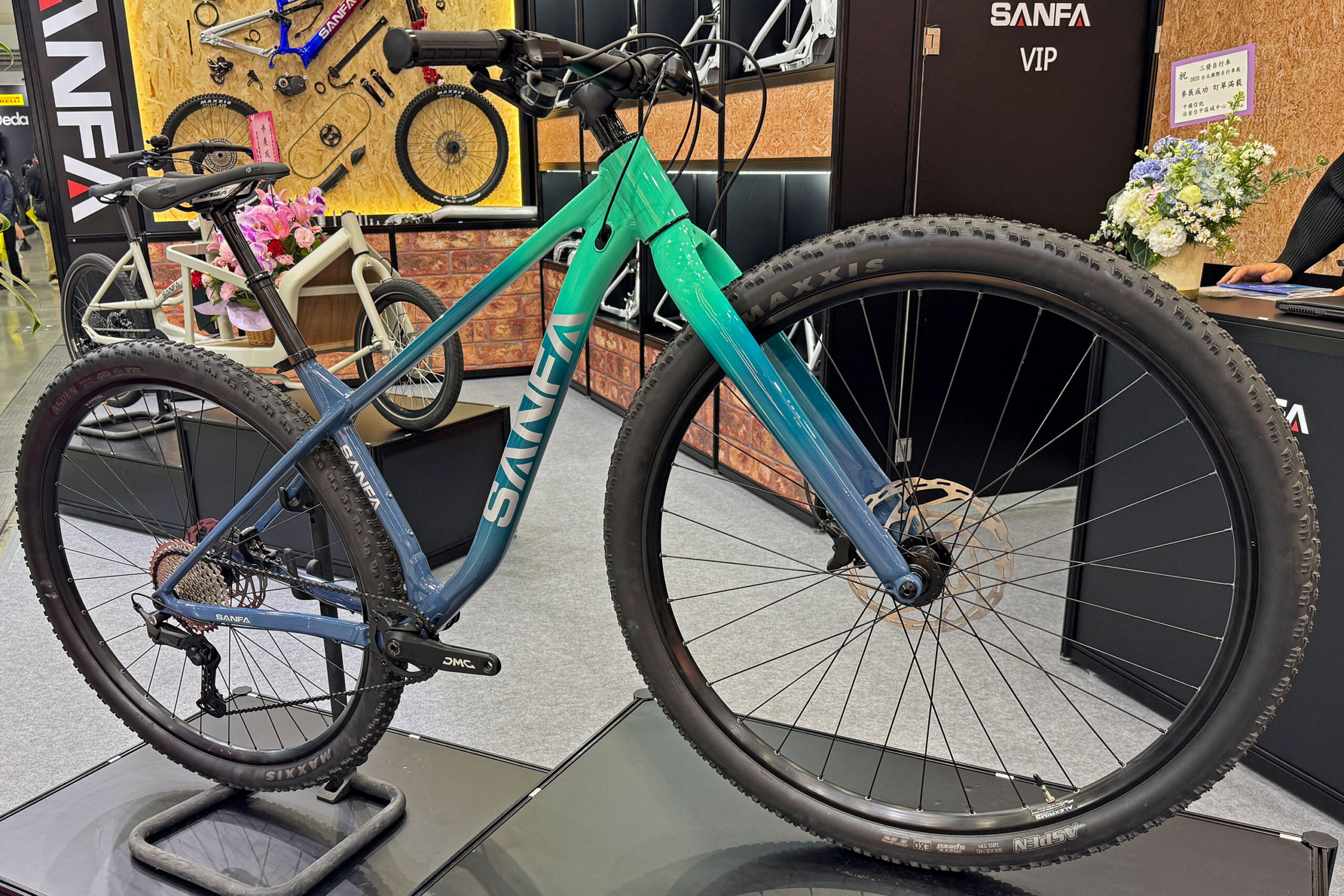 9 out of 10 complete 32″ bikes in Taipei had the Aspen that sparked all this silliness. But Maxxis wasn’t showing off the other tires they’ve teased in the meantime – like the 32″ trail Dissector.
