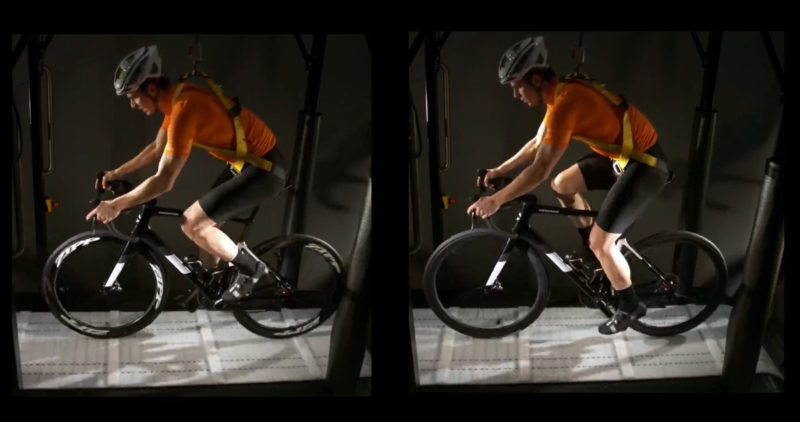 … as proven by the Zipp RollingRoad. Essentially a cobblestone treadmill, the RollingRoad helped Zipp to visualize what effect tire pressures have on whole-body vibration. Based on their data from the RollingRoad tests, Zipp found that the difference between ultra-low and high pressure can be as much as 50 watts. That’s 50 watts that you stand to gain by moving to a wider tire on a wider rim while riding at 20mph over various surfaces. Compared to the usual wattage savings touted by aerodynamic components, that’s huge.